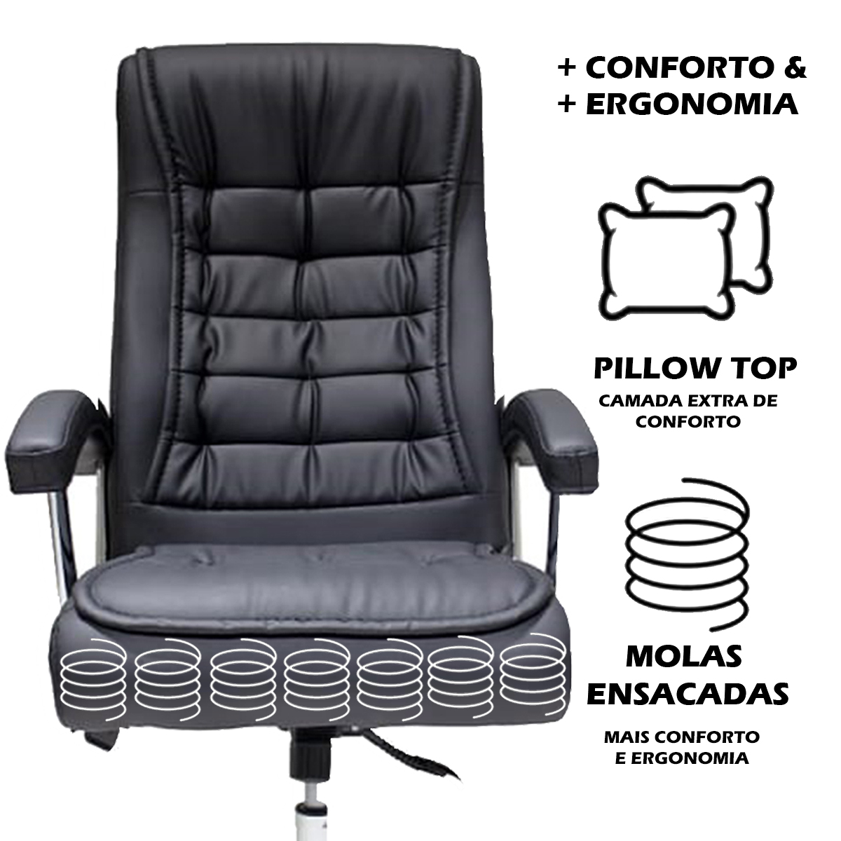 Cadeira de Escritório Presidente Ergonômica Com 42 Molas Ensacadas, Sistema Relax Com Trava, Pillow Top, Monique Big Preta