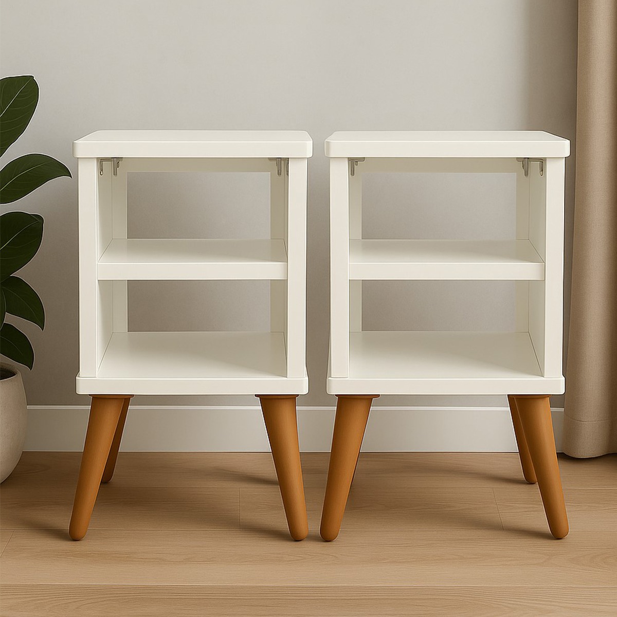 Kit 2 Mesas de Cabeceira Nicho Quarto Casal Decoração Retro Pés Reguláveis